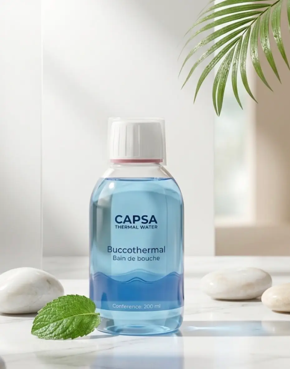 Buccothermal Capsa , Bain de bouche à base d’eau thermale pour une hygiène buccale complète et une fraîcheur durable.