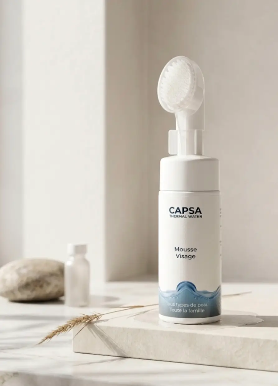 Mousse Visage Capsa , Nettoyage doux et purifiant à base d’eau thermale pour une peau fraîche et éclatante.